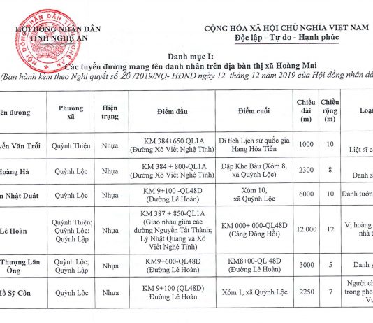 Thị xã Hoàng Mai: Đặt tên 59 tuyến đường ở thị xã Hoàng Mai...